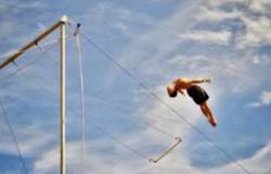 artist who lets go of one acrobatic bar before getting